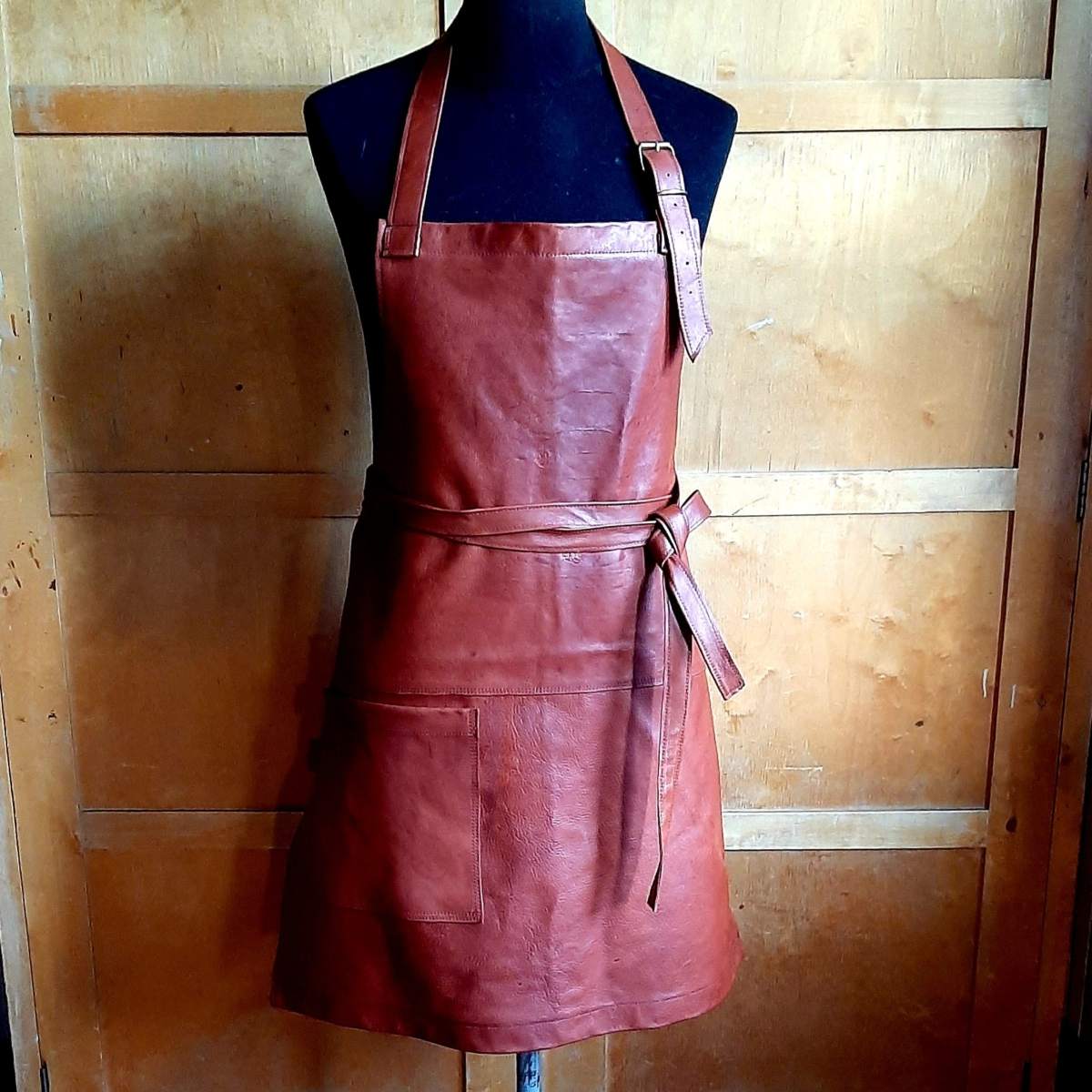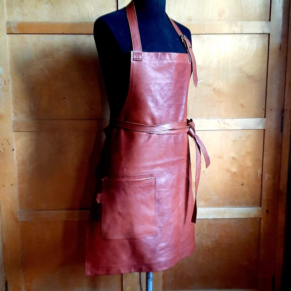 Käyttötarkoitus: Nahkaessu, joka suojaa käsityöläisen tai kokin vaatetusta työskennellessä.